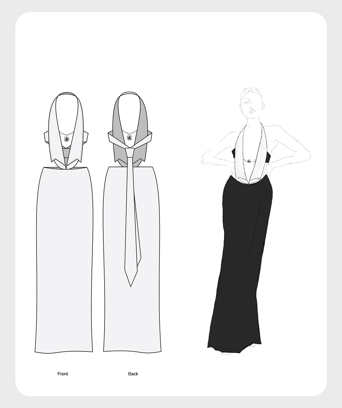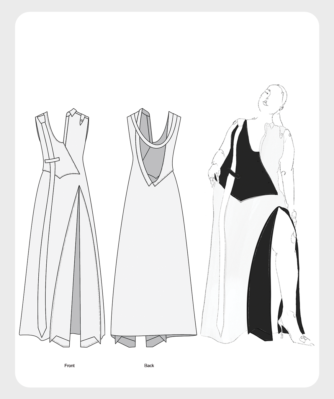 The inspiration for Black Tie came from the timeless elegance of traditional men's formal wear, including suits, tuxedos, and ties. Blurring the lines between masculine and feminine aesthetics, each design embraces sharp tailoring and clean lines to create a striking and empowering silhouette. Each piece in this collection embodies the confidence and refinement of classic menswear while celebrating the strength and individuality of the modern woman. With a touch of androgynous charm, this evening wear collection redefines the boundaries of formal fashion, offering a fresh perspective on sophistication and style.