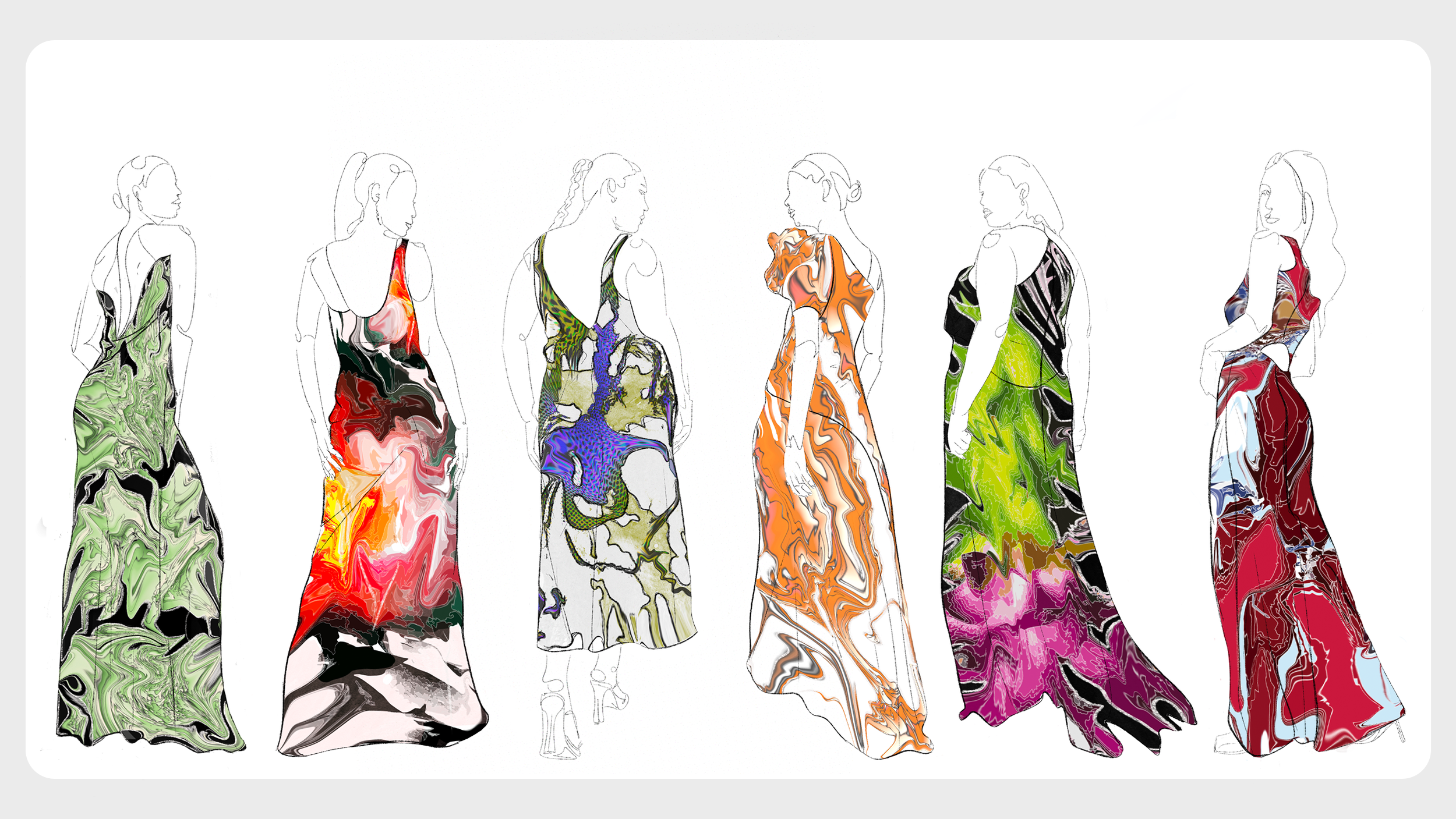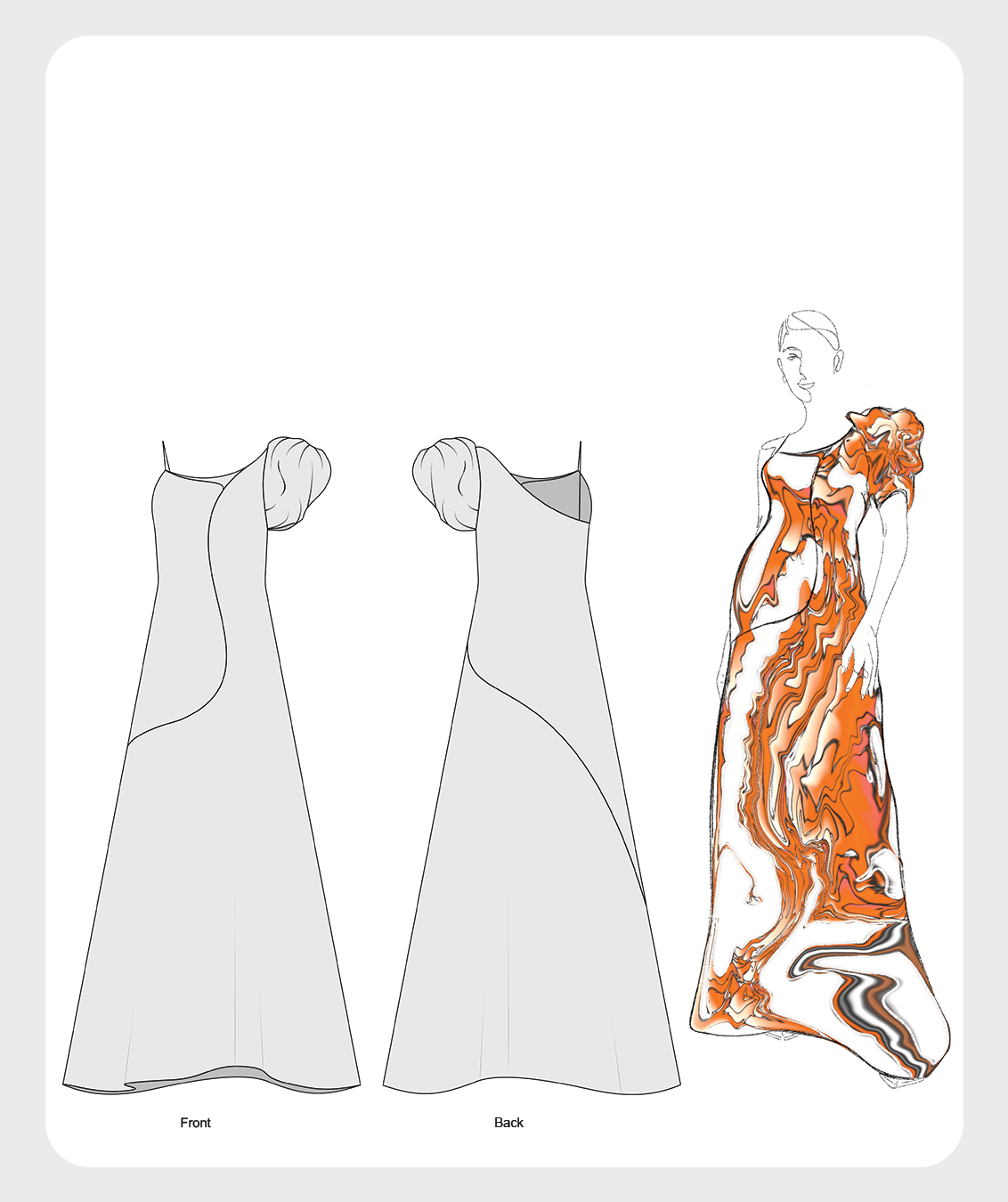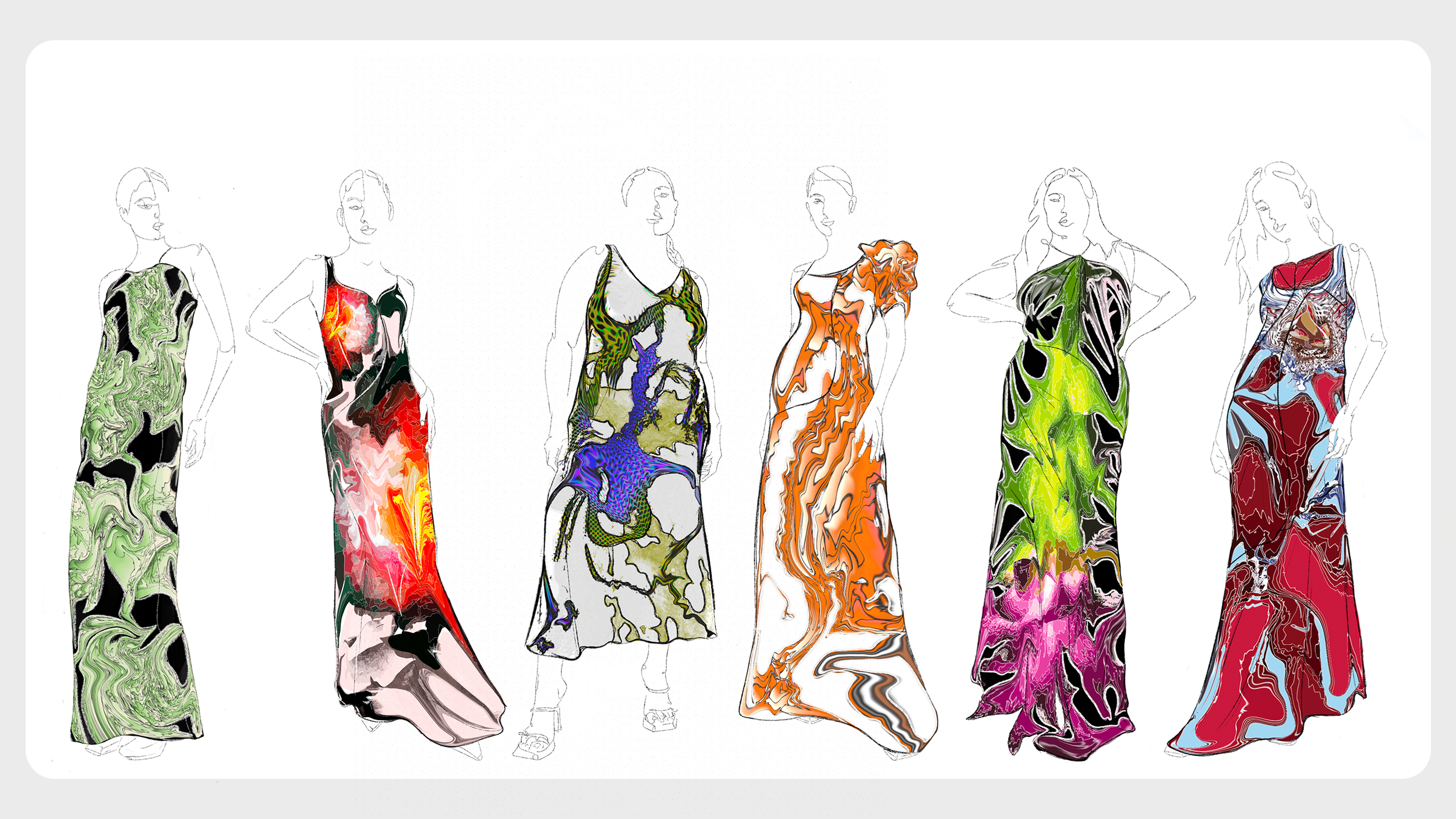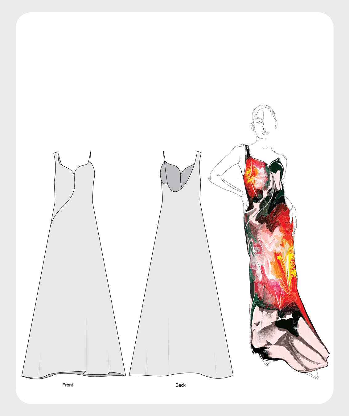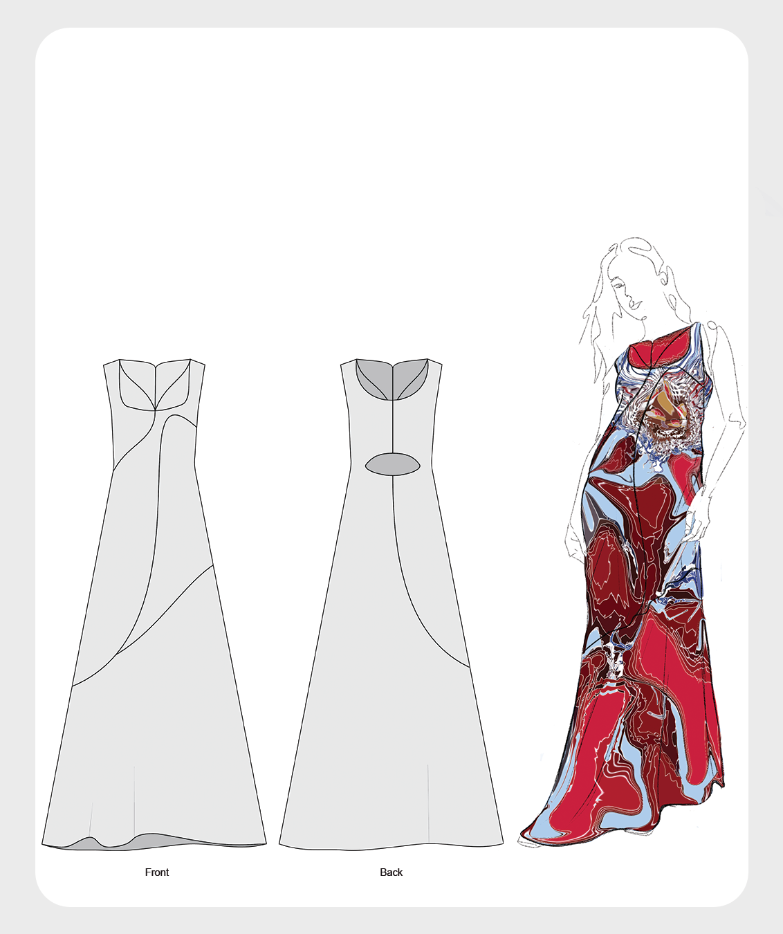 Flowers and Rugs is a vibrant fusion of floral elegance and intricate rug motifs. I was inspired by the natural beauty of blooming flowers in my mothers garden and the rich patterns I found in traditional rugs. This collection weaves together artistry and fashion. Each dress is a canvas adorned with the vivid colors and intricate details that only nature can provide. Asymmetrical details paired with bold abstract prints transport wearers to a world where fashion is an expression of both femininity and cultural richness, inviting them to step into a garden of style and grace.