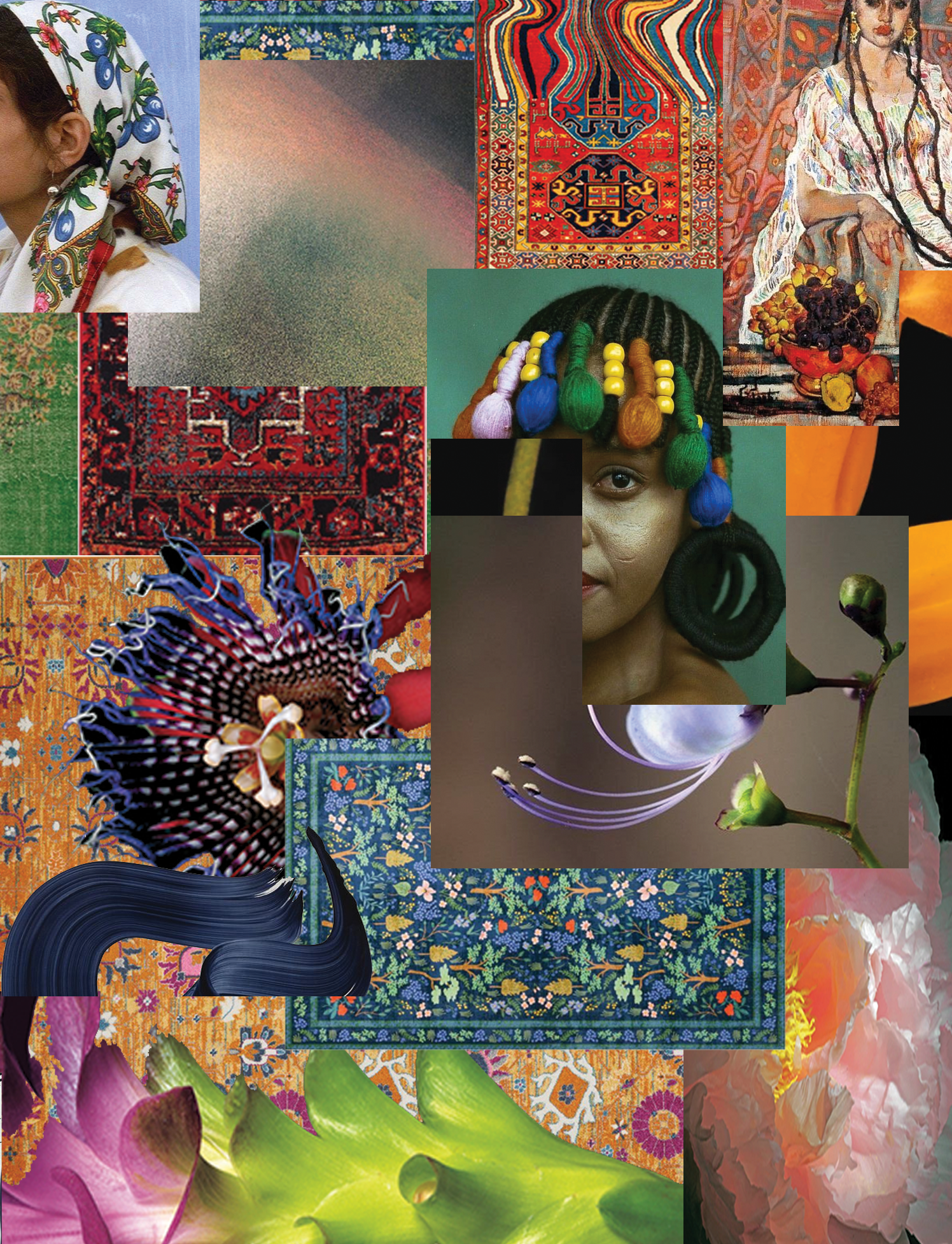 Flowers and Rugs brings together organic beauty and intricate abstraction to form a harmonious pallet.